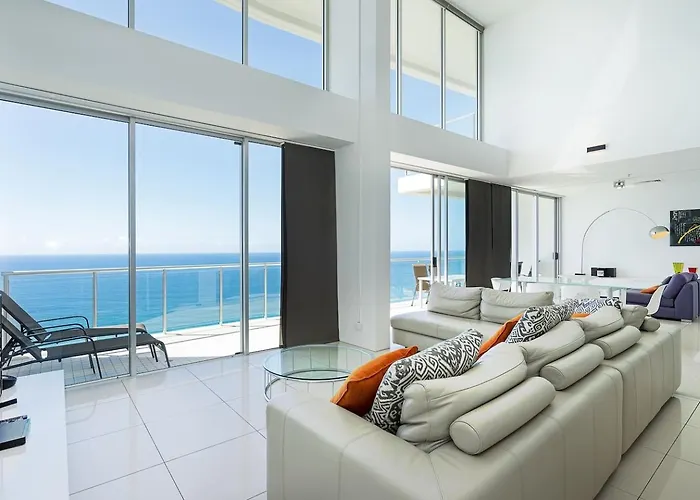 Das 2-Zimmer-Apartment Endless Blue - Stunning Beachfront Living With Pool Gold Coast befindet sich im Viertel Macau Zentrum ca. 10 Minuten zu Fuß vom Pacific Fair Shopping Centre entfernt, und bietet einen Blick aufs Meer. Die 175 m² großen Apartments bietet eine Sonnenterrasse und liegt in nur 350 Meter Entfernung vom The Oasis Shopping Centre.